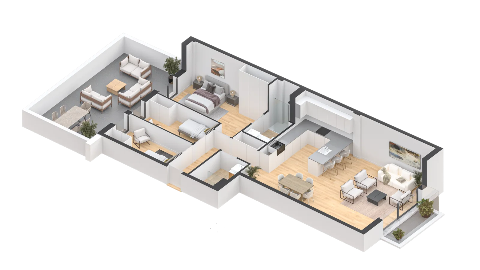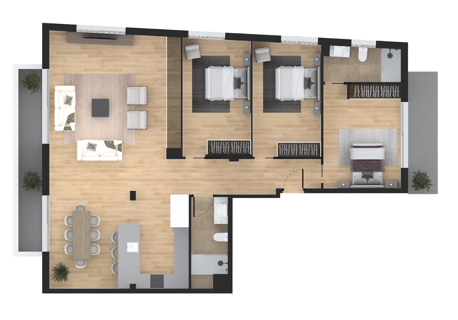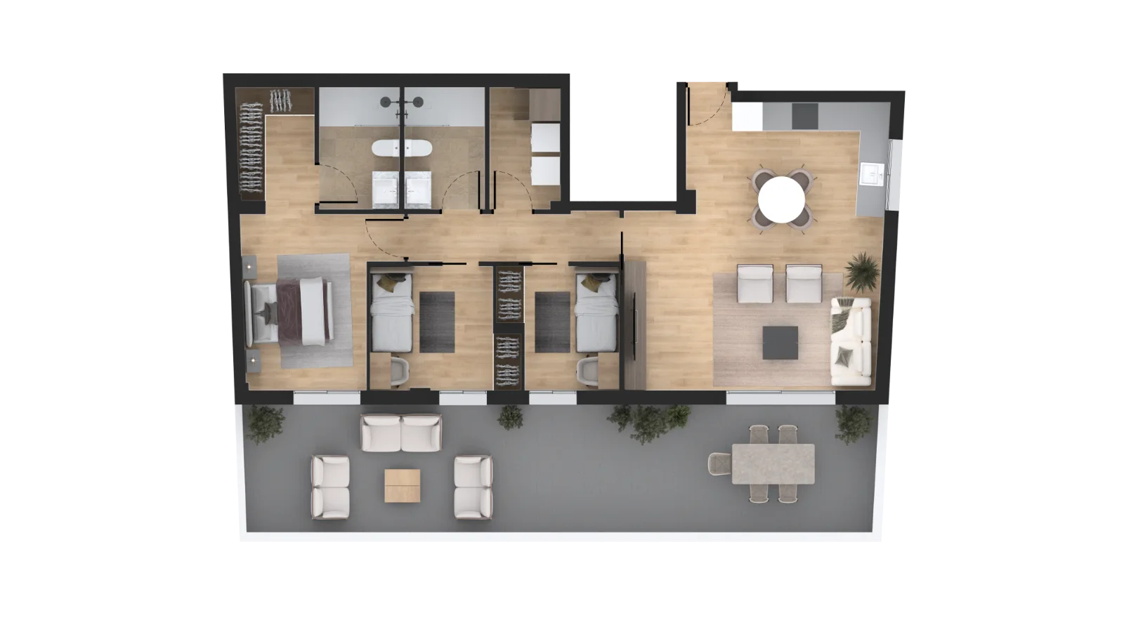 Aquesta informació està basada en el Projecte Bàsic i pot patir canvis per motius tècnics, legals o per ordre de l’administració, garantint sempre l’adequació al Projecte d’Execució. Les superfícies, la distribució de sanitaris i el sentit d’obertura de les portes són aproximats. El mobiliari i la decoració que apareixen a les imatges tenen una funció purament comercial i no formen part de l’oferta contractual.